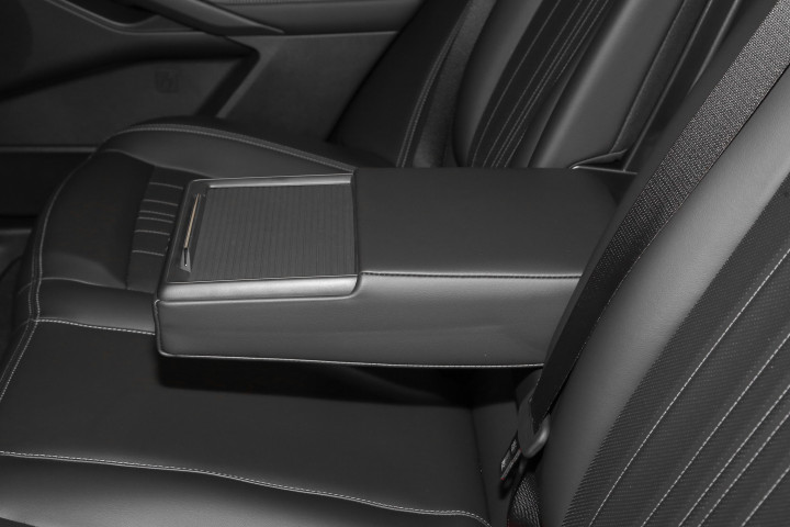 空间方面,家庭用车的舒适体验高度依赖乘坐和储物空间,所以我特别关注。首先从车身数据看,蒙迪欧的长宽高为4935×1875×1500mm,轴距达到2945mm,算同级别里比较长的,就连帕萨特都比不过它多出74mm,凯美瑞更是差了120mm。结果就是后排腿部空间极为宽裕。以我177cm身高为例,坐后排膝盖还能离前排座椅靠背两拳有余,翘条二郎腿轻轻松松。即使后排坐满三名成年人,也不会有拥挤感。另外一个体验让我很欣慰的是,蒙迪欧的后排地板设计得平整,坐在中间的乘客脚部不必蜷缩,比不少后排地板中间有凸起的同级车型舒服很多,长时间乘坐下来疲劳感明显减轻。储物空间的设计也非常注重实用性,不是光为了追求大容量,而是真的考虑日常用车的便捷。比如,中控台下面有一个镂空储物格,能方便地放下13英寸笔记本电脑包,平时办公带电脑,上车能随手一放,拿取都方便。中央扶手箱够深,一次能装进6瓶500ml矿泉水,且有分层设计,上层可放零食,下层放充电线等,物品不会乱糟糟。门板上的储物槽设计合理,可以同时装下折叠雨伞和1升保温杯,后排扶手上还设置了两个杯架和手机槽,让车内乘员随时轻松拿取饮品和电子产品,增加舒适度和便利性。